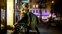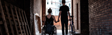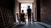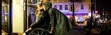 Ein Rollstuhl wird dabei bildlich zum Problem der Inklusion inszeniert.